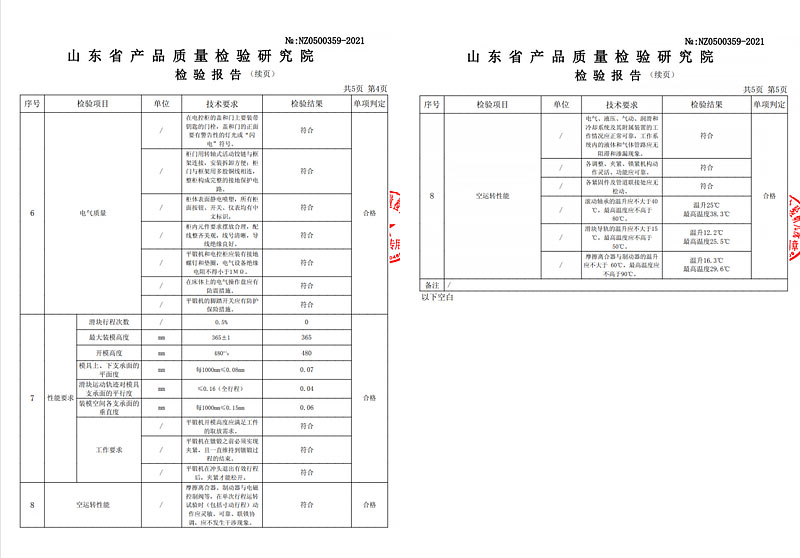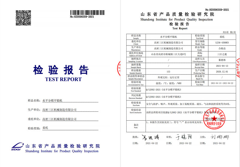附《鍛壓機械協會鑒定報告》、《山東省質量檢測院--檢測報告》