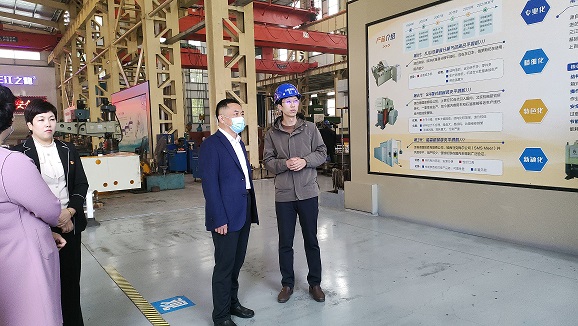 “企業(yè)當(dāng)前生產(chǎn)經(jīng)營(yíng)狀況如何?”有哪些困難?“2022年10月14日下午,高密市委巡察辦黨支部主任孫述勤帶隊(duì)蒞臨三江機(jī)械走訪觀摩。